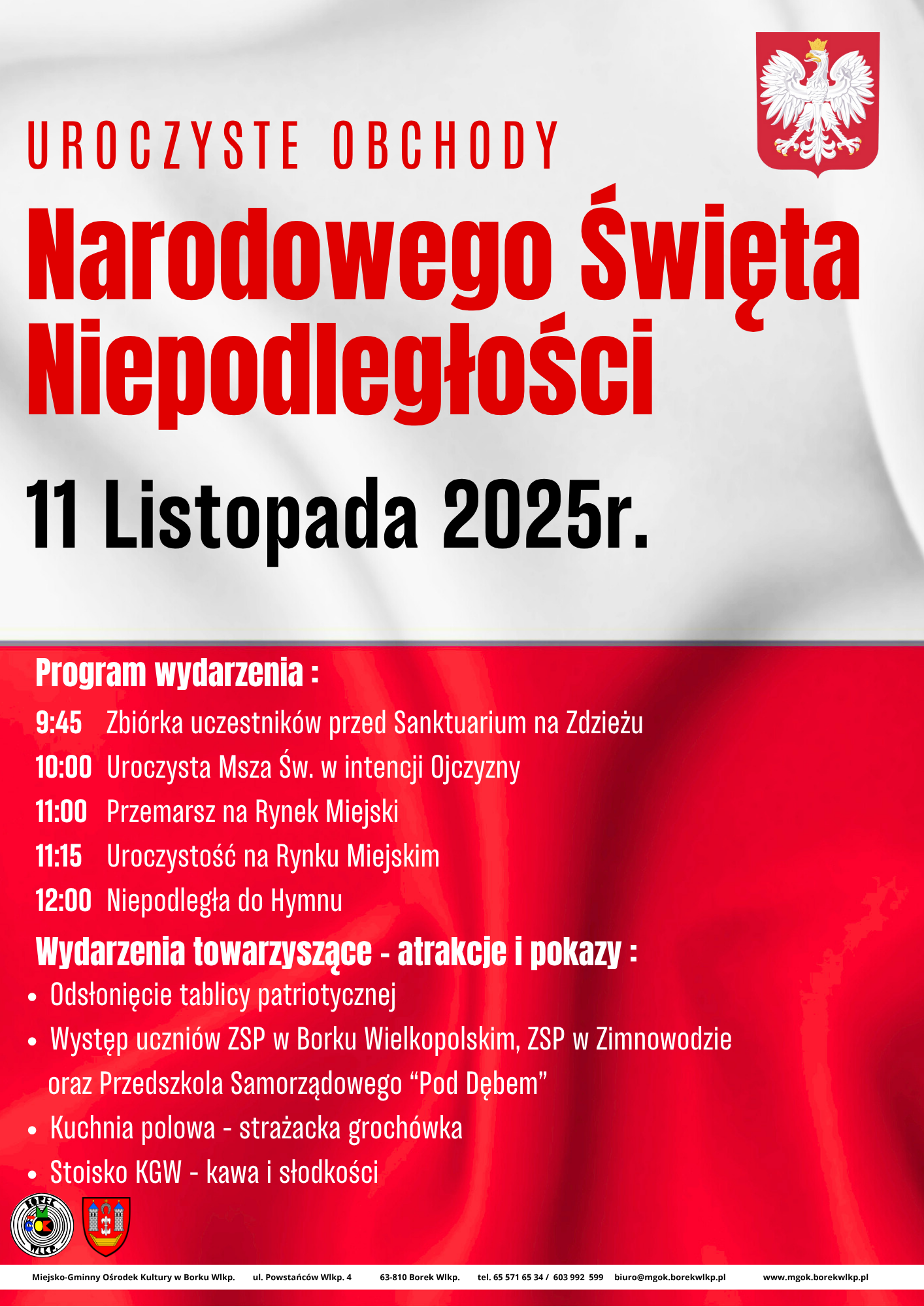 Serdecznie zapraszamy wszystkich mieszkańców do wspólnego świętowania Narodowego Święta Niepodległości.