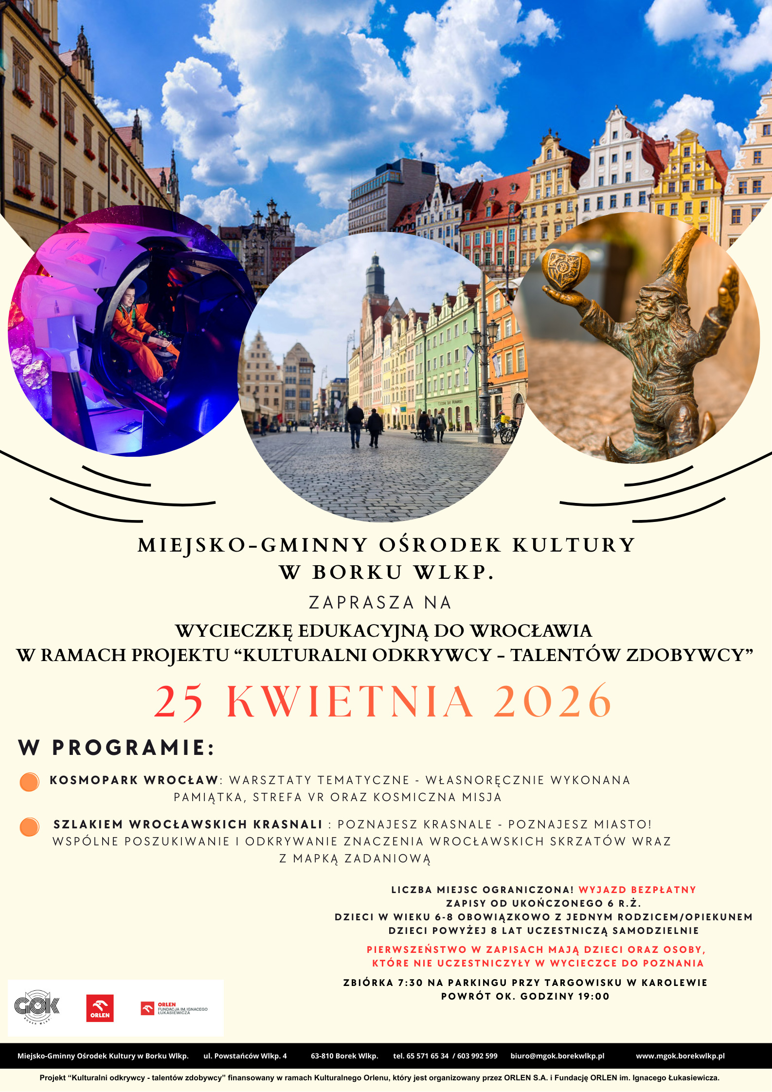 Przed nami dzień pełen wrażeń – spacer po urokliwym Wrocławiu, odkrywanie klimatycznych uliczek, interaktywne wystawy i wiele innych atrakcji.